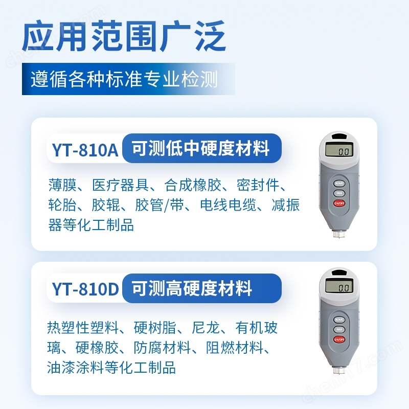 它適用于塑料(如薄膜、醫(yī)療器具等)、合成橡膠(如密封件、輪胎、膠輥、膠管/帶、電線電纜、減振器等)及其它相關(guān)化工制品的硬度測量。具有自動(dòng)關(guān)機(jī)功能。