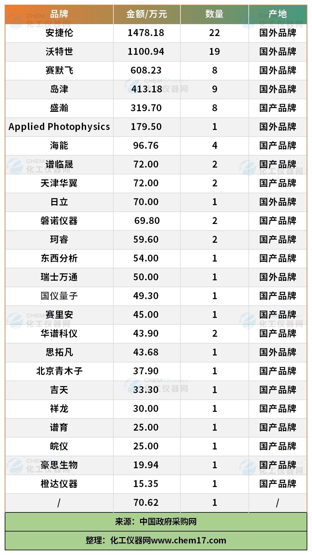 注2:本文中所指的“產(chǎn)地”為儀器品牌的歸屬地,品牌歸屬地為中國(guó)的品牌歸為國(guó)產(chǎn)品牌,品牌歸屬地為外國(guó)的品牌歸為國(guó)外品牌。