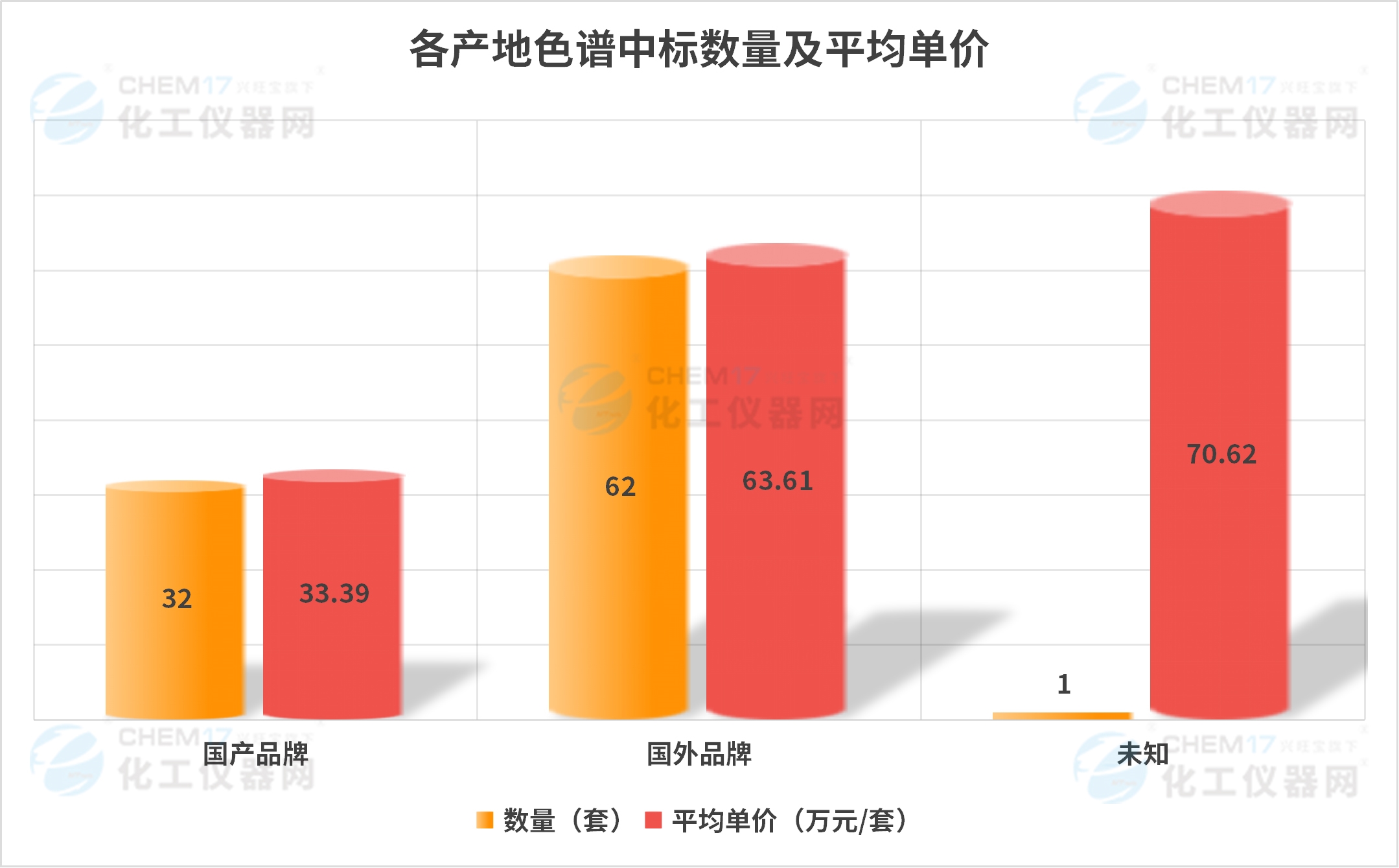 從“各產(chǎn)地色譜中標(biāo)數(shù)量及平均單價(jià)”來(lái)看,1月國(guó)產(chǎn)品牌色譜儀的中標(biāo)數(shù)量為32套,約占1月份色譜儀中標(biāo)總數(shù)量的33.68%,平均中標(biāo)單價(jià)約為33.39萬(wàn)元/套;國(guó)外品牌色譜儀的中標(biāo)數(shù)量為62套,約占1月份色譜儀中標(biāo)總數(shù)量的65.26%,平均中標(biāo)單價(jià)約為63.61萬(wàn)元/套;未知產(chǎn)地品牌色譜儀的中標(biāo)數(shù)量為1套,平均中標(biāo)單價(jià)約為70.62萬(wàn)元/套。