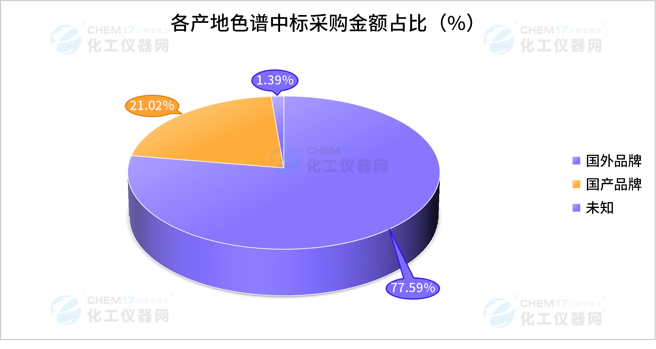 從“各產(chǎn)地色譜中標(biāo)采購(gòu)金額占比”數(shù)據(jù)來(lái)看,1月國(guó)產(chǎn)品牌色譜儀的中標(biāo)金額為1068.55萬(wàn)元,約占1月色譜儀中標(biāo)總金額的21.02%;1月國(guó)外品牌色譜儀的中標(biāo)金額為3943.71萬(wàn)元,約占1月色譜儀中標(biāo)總金額的77.59%;未知產(chǎn)地色譜儀的中標(biāo)金額為70.62萬(wàn)元,約占1月色譜儀中標(biāo)總金額的1.39%。