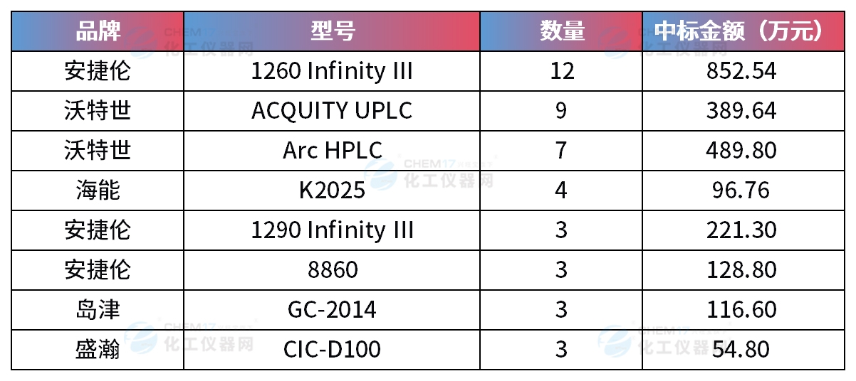 從中標(biāo)儀器類型來(lái)看: